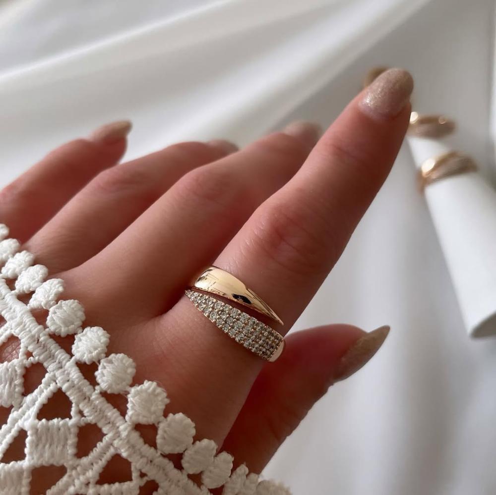 خاتم مفتوح نصفه مرصع بالزركون مطلي ذهب عيار ١٤ ( القياس مرن قابل للتعديل ) . MR-055