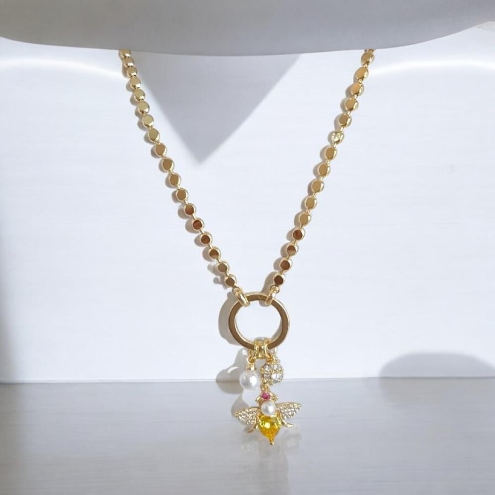 سلسال طويل مع تعليقة بشكل نحلة مطلي ذهب. MN-103