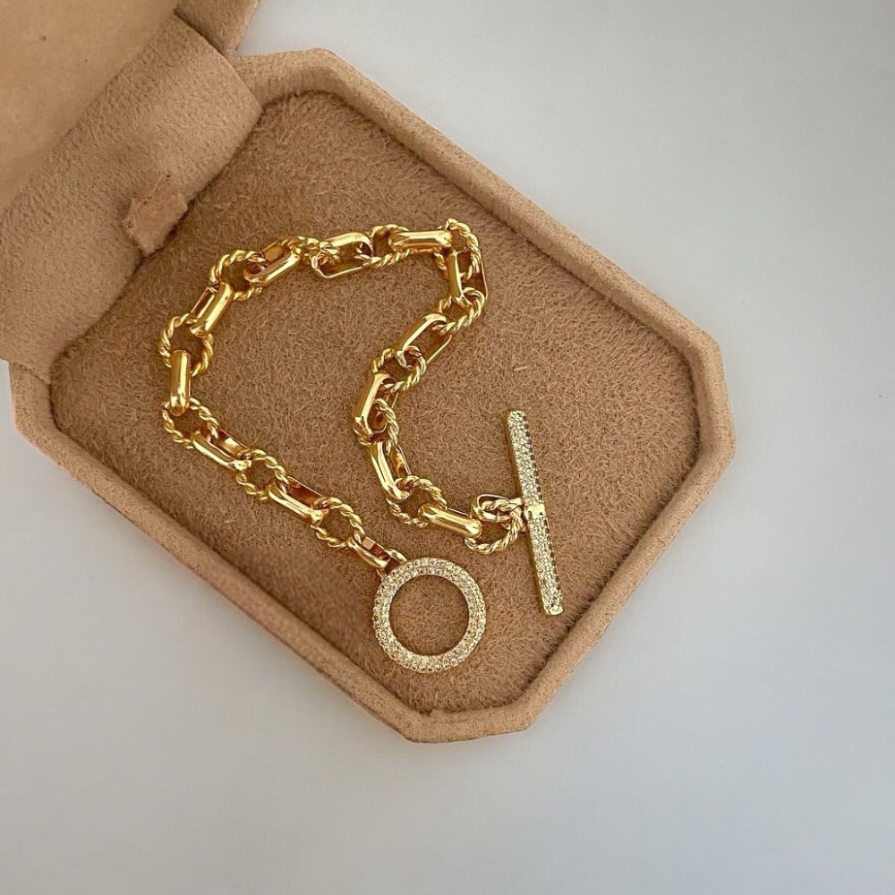 سوار جنزير مع قفل مرصع بالزركون مطلي ذهب. MB-145