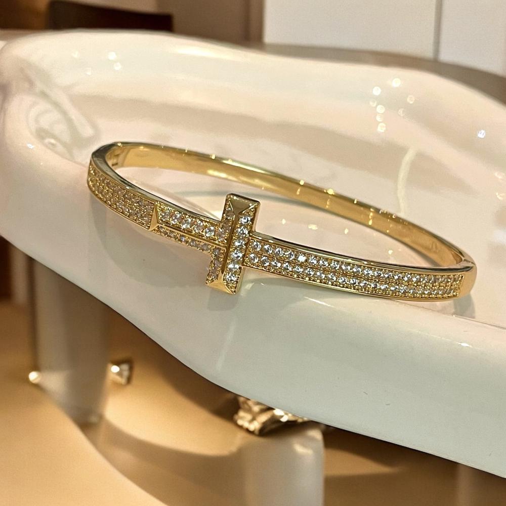 سوار ذهبي فاخر بتصميم مستوحى من أسلوب “T” الأيقوني