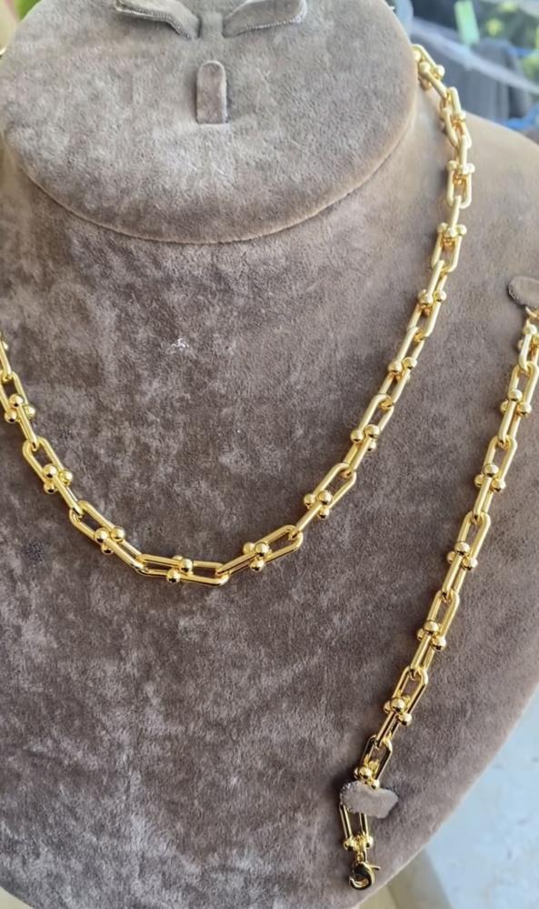 طقم تيفاني سادة مطلي ذهب طبق الأصل في الشكل والتفاصيل واللون مع طلاء ذهب عيار 14 بضمان على الطلاء، الطقم قطعتين عقد وانسيال لتجهزي قبل مناسباتك بكل سهولة ومظهر مميز بنفس شكل التصميم الأصلي مع ضمان على القطع لتتمتعي بها بنفس جودتها وفخامتها أطول فترة ممكنة في كل سهراتك وخروجاتك.