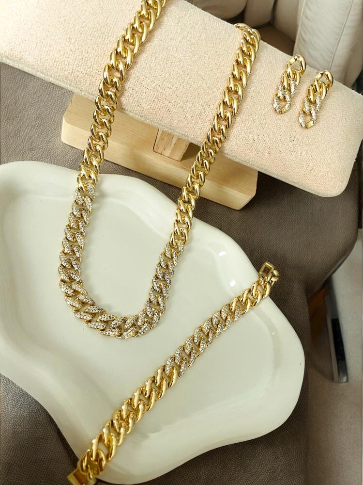 طقم جنزير مطلي بالذهب ومرصع بالزركون – فخامة وأناقة لا تُقاوم