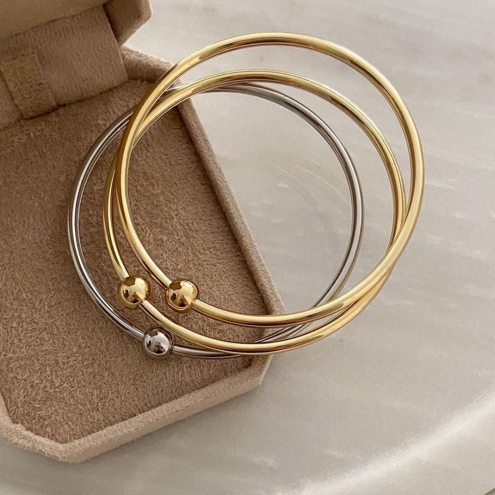 مجموعة من ثلاث اساور ذهبية وفضية مقاس كبير (قطرها 7cm) MB-115