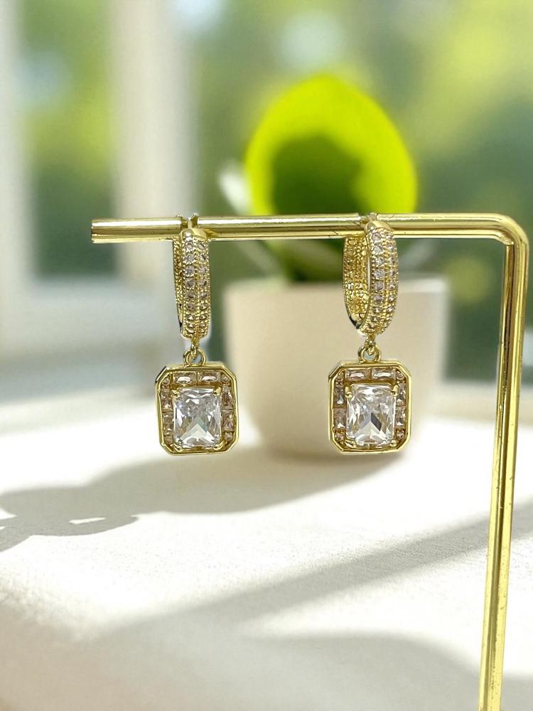 أقراط متدلّية مطلية بالذهب – تصميم فاخر بحجر لامع