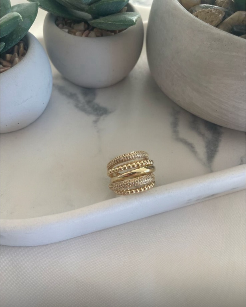تميّزي بإطلالة استثنائية مع هذا الخاتم الراقي، المصنوع من خامات عالية الجودة ومطلي بالذهب عيار 14.