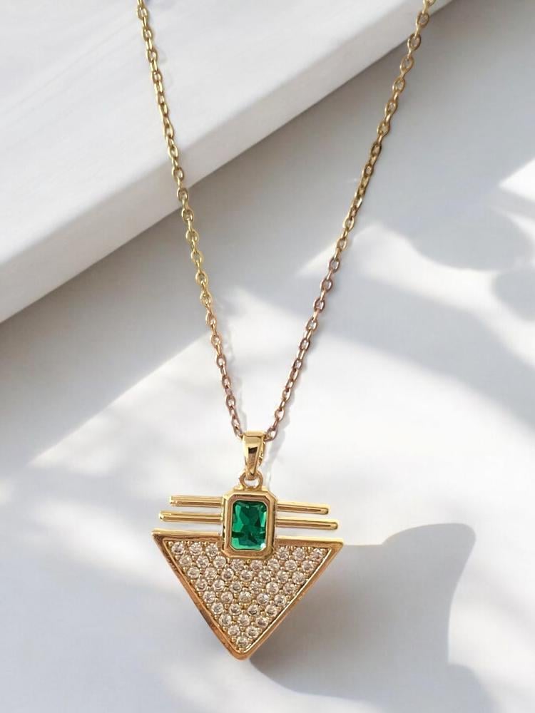 سلسال بتصميم فاخر مع حجر مميز أخضر اللون لون ذهبي . MN-110