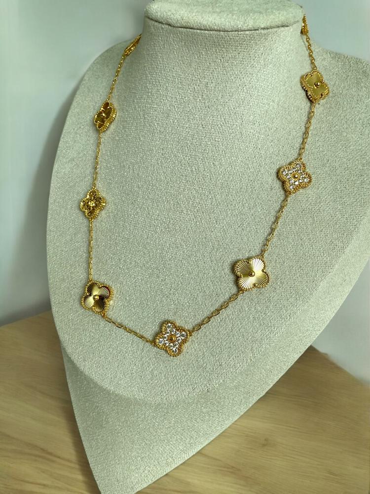 سلسال بتصميم مستوحى من فان كليف عشر وردات لون ذهبي متناوبة مع وردات مغطاة بالزركون مع اللوغو مطلية ذهب عيار ٢١. MS-113