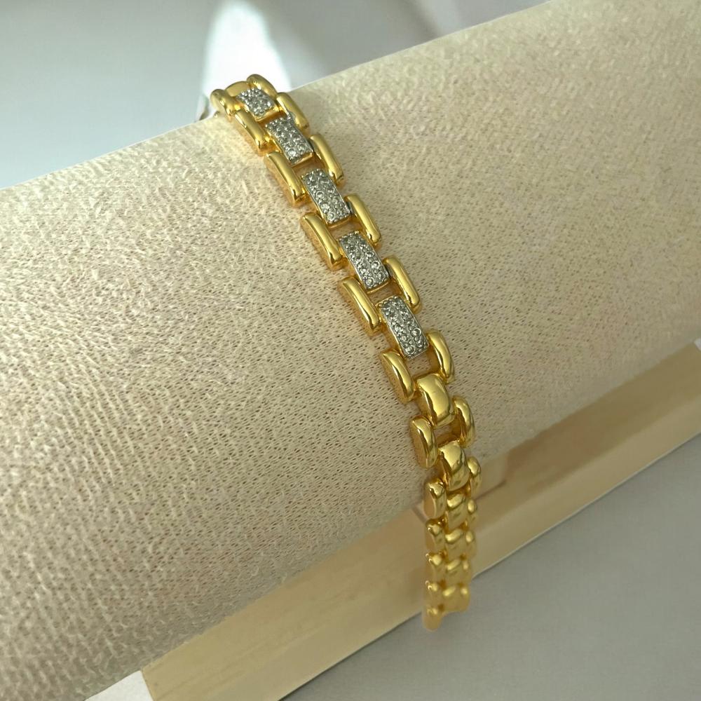 سوار بتصميم مستوحى من رولكس مرصعة بالزركون مطلية ذهب . MB-279