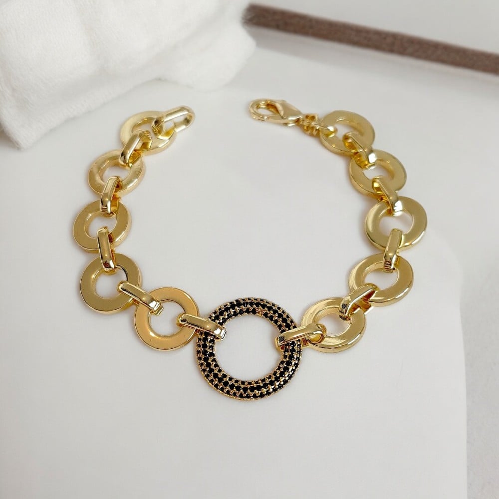سوار جنزير مع قلادة بشكل حلقة لون كحلي مطلي ذهب. MB-175