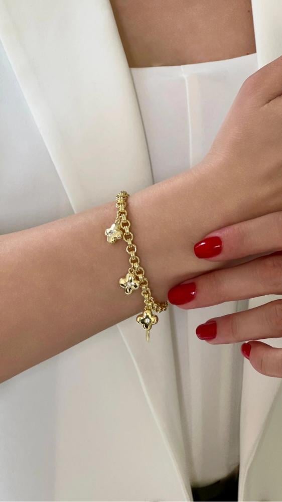 طقم فاخر مطلي ذهب عيار ١٤ مكون من سلسال وأساور بتعليقات ناعمة